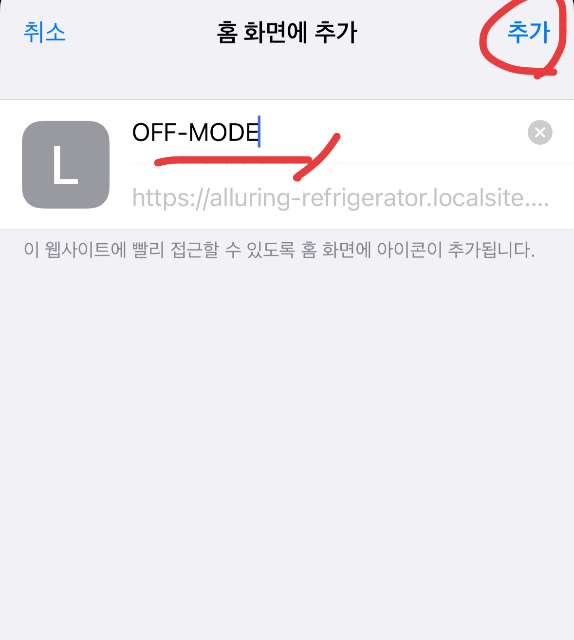 - 아래로 창을 내려 "홈 화면에 추가" 버튼을 클릭
